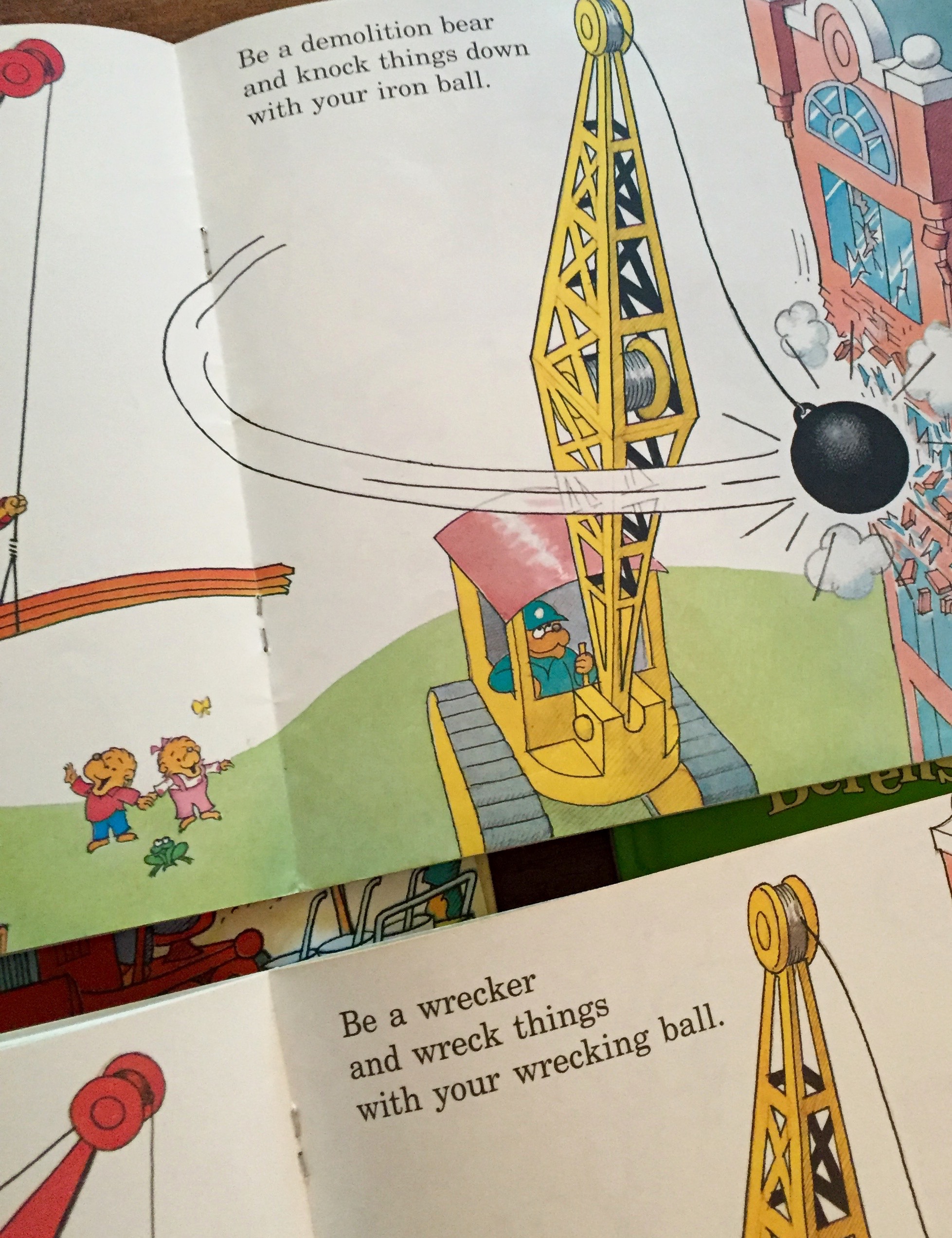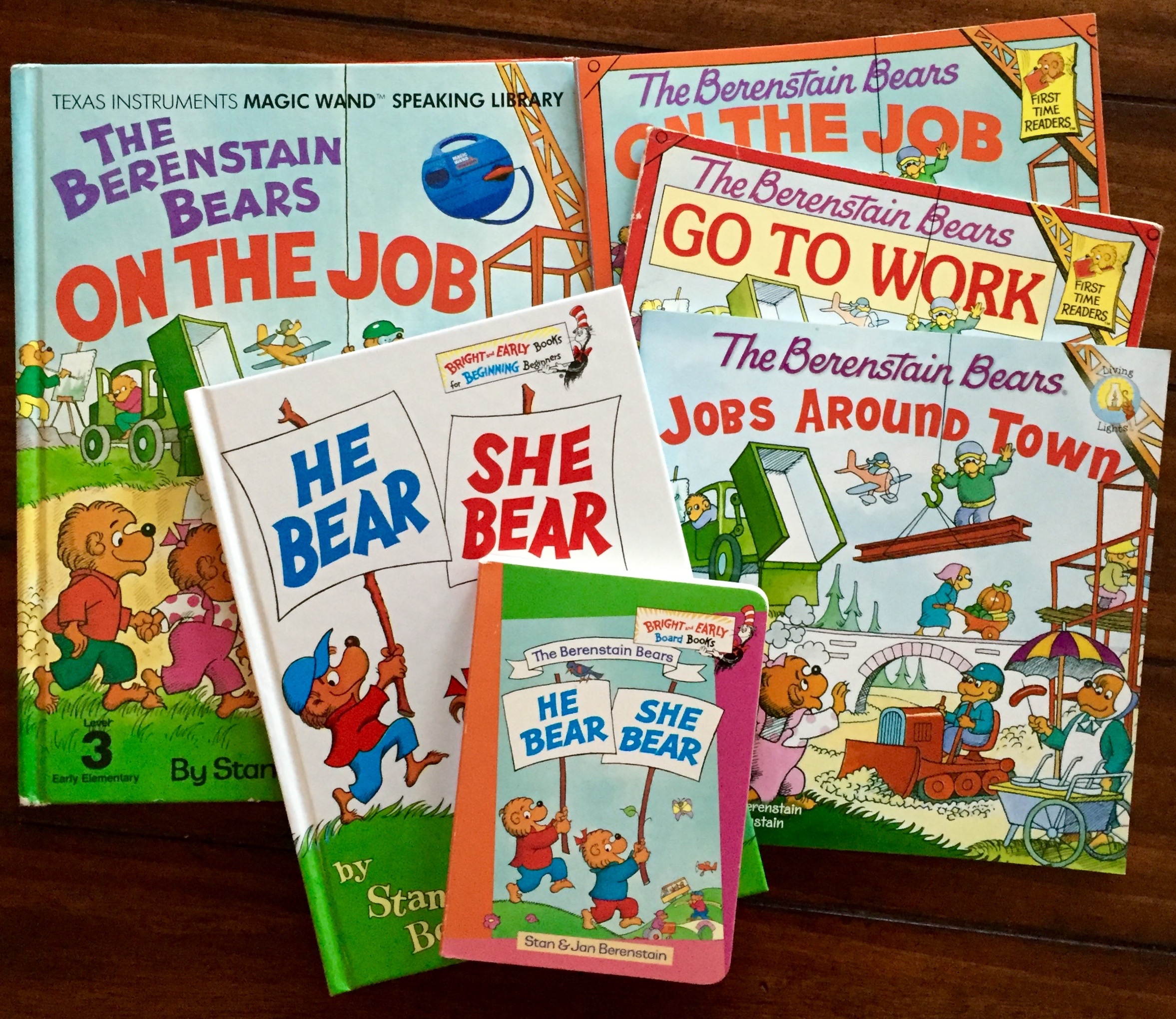In 2011, the most recent version of “He Bear, She Bear” came out: “The Berenstain Bears Jobs Around Town” (Zondervan Living Lights Series). The book takes the text of the 1987 version of “On the Job,” and adapts it through a Christian perspective. Michael Berenstain (the son of Stan and Jan who now writes all the new Berenstain Bears titles) has adapted the original text of the original story to include Bible verses and a faithful perspective on choosing a future career through prayer and Godly calling.